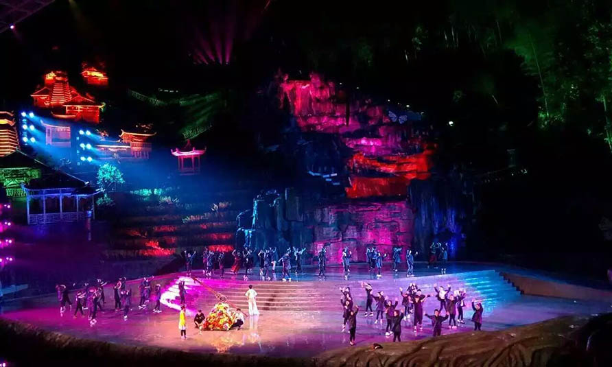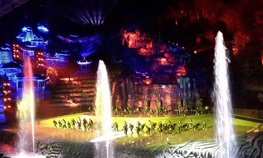 浩洋電子通過極富創意的燈光設計和表現力十足的燈光應用,準確地描繪出侗寨的文化特性,將燈光演繹與當地的山水風景完美融合,共同構成一個演出的整體,為《薩瑪》增添了新的藝術形態,衍生出了新的看點,成為貴州省內極具民族文化特色的旅游演藝新標桿!
