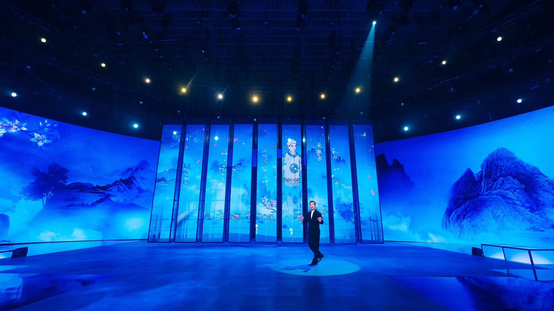 在舞美方面,《國家寶藏》節目組特別將所有舞臺主視覺都設置在一塊長43米、高7米的巨型LED環幕上,讓觀眾在見不到國寶實物的情況下也能以直觀的感受體驗到國寶的震撼美。在整個舞臺的設計上,節目組將中國古典韻味和現代舞臺科技相結合,融合紗盒投影視覺呈現、透視冰屏柱視覺呈現、透視冰屏柱臺型變幻、巨型環幕視覺呈現四大特點于一體。在場景環境的構建與更替上都呈現出精致逼真的舞臺效果,這種舞臺視覺上的極致沖擊力也成為節目吸引眼球的一大亮點。