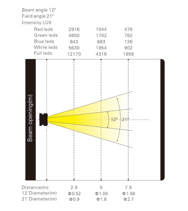 LED類型:16顆10W大功率RGBW 4合1 LED,達(dá)到均勻細(xì)膩的混色效果
