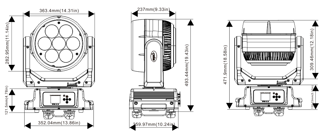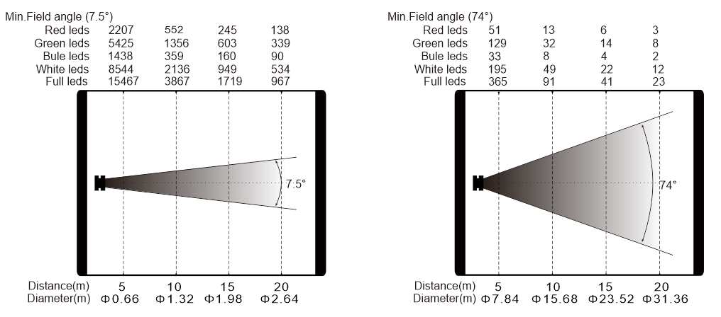 變焦范圍:5.5°-59°(光束角)7.5°-74°(光斑角)