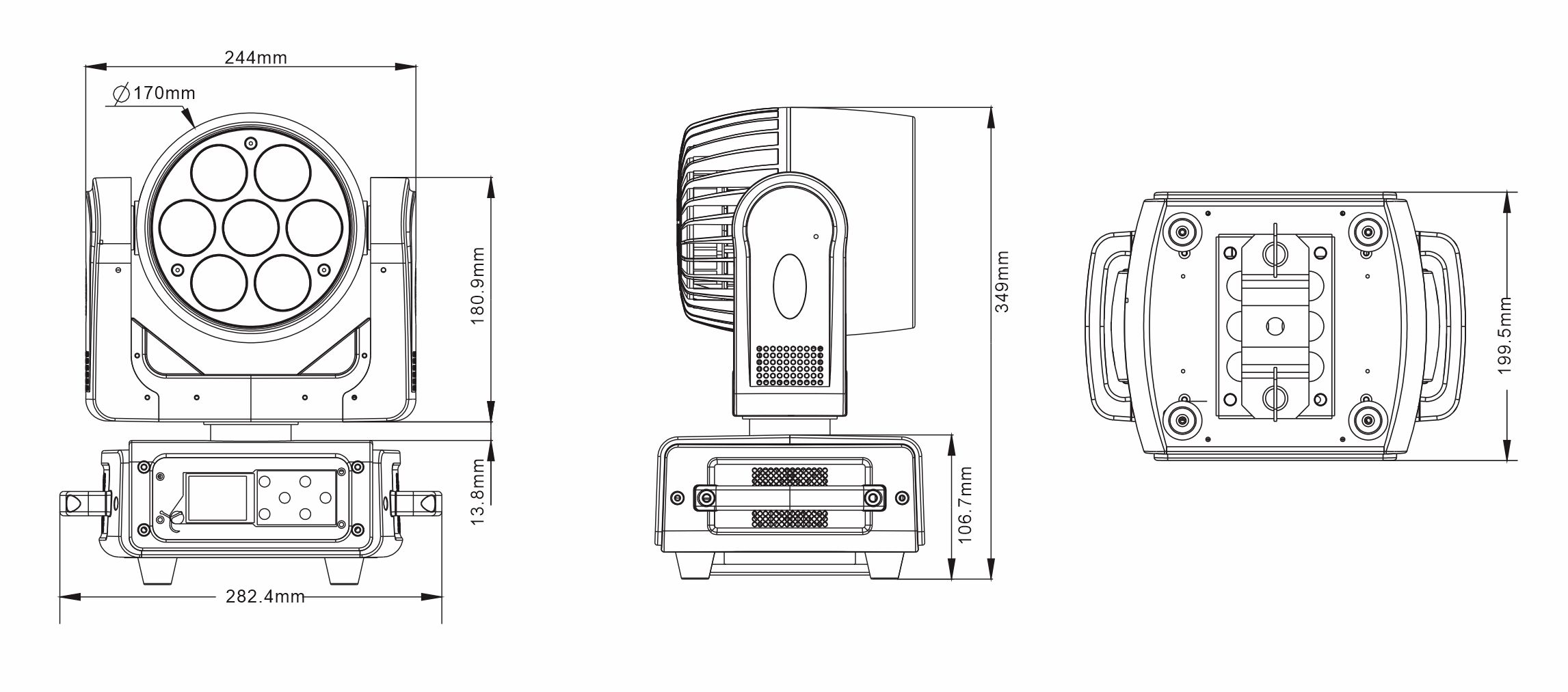 變焦范圍:光束角:7°-35°,光斑角:10°-59°