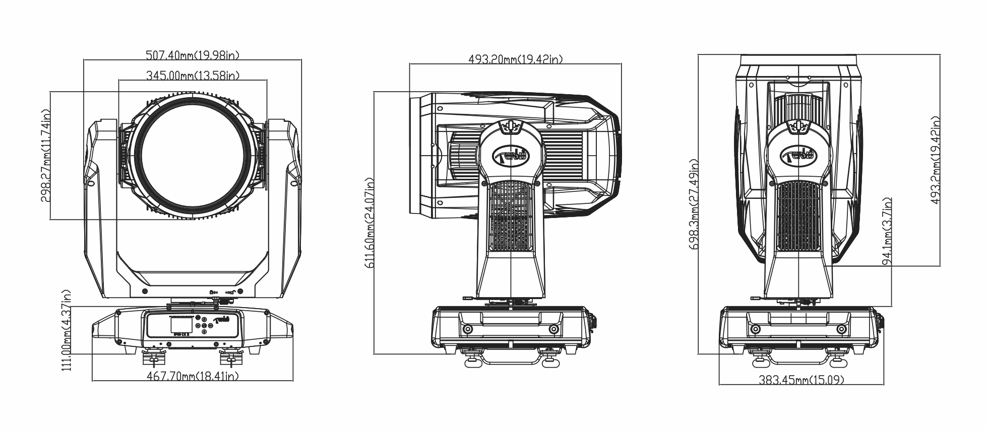 可從控臺完成更改DMX地址碼,機器重設等功能