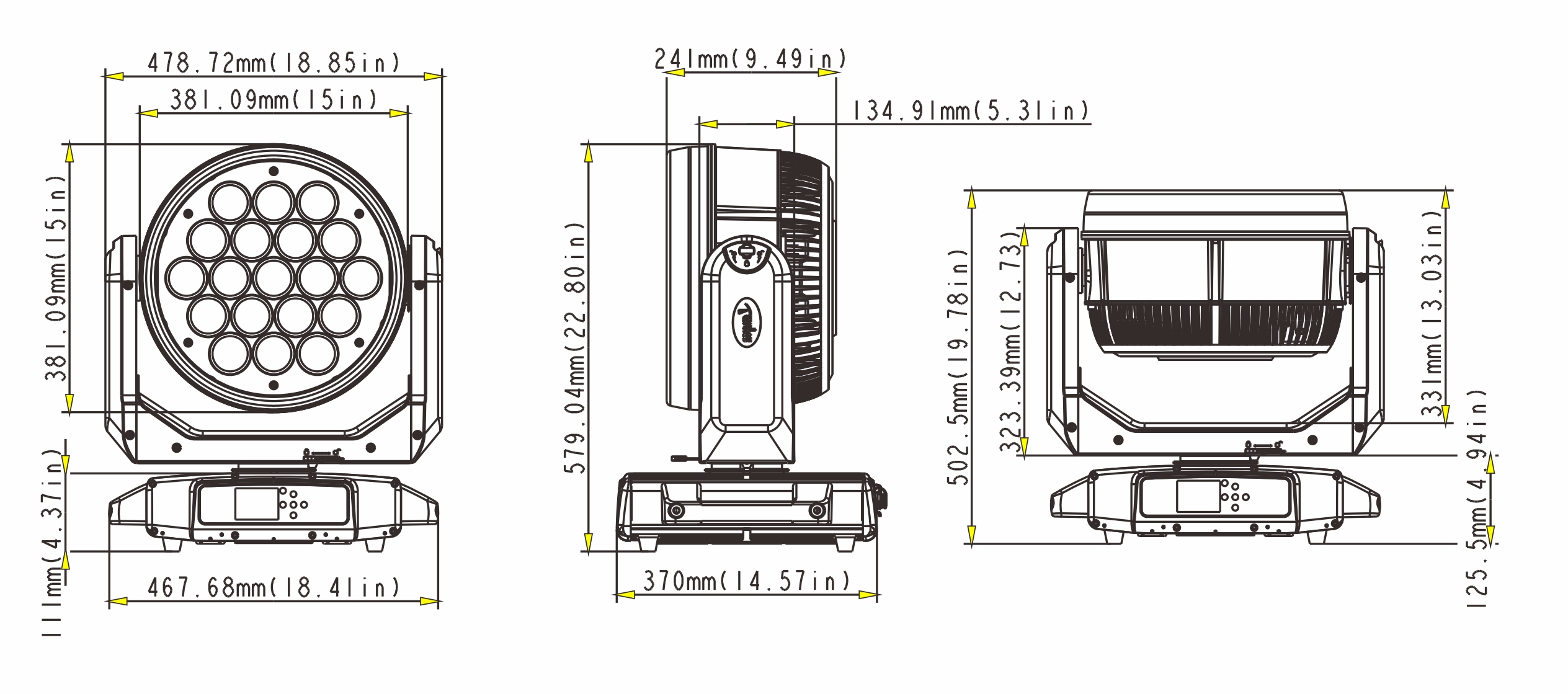 變焦范圍:光束角: 5.5°-55°,光斑角: 7°-72°