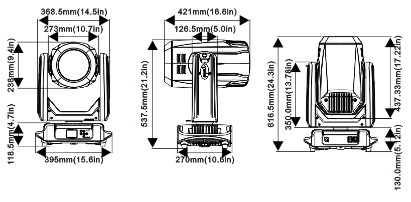 變焦范圍:光束模式:2.3°-28°;圖案模式:5.5°-42°;染色模式:11°-40°