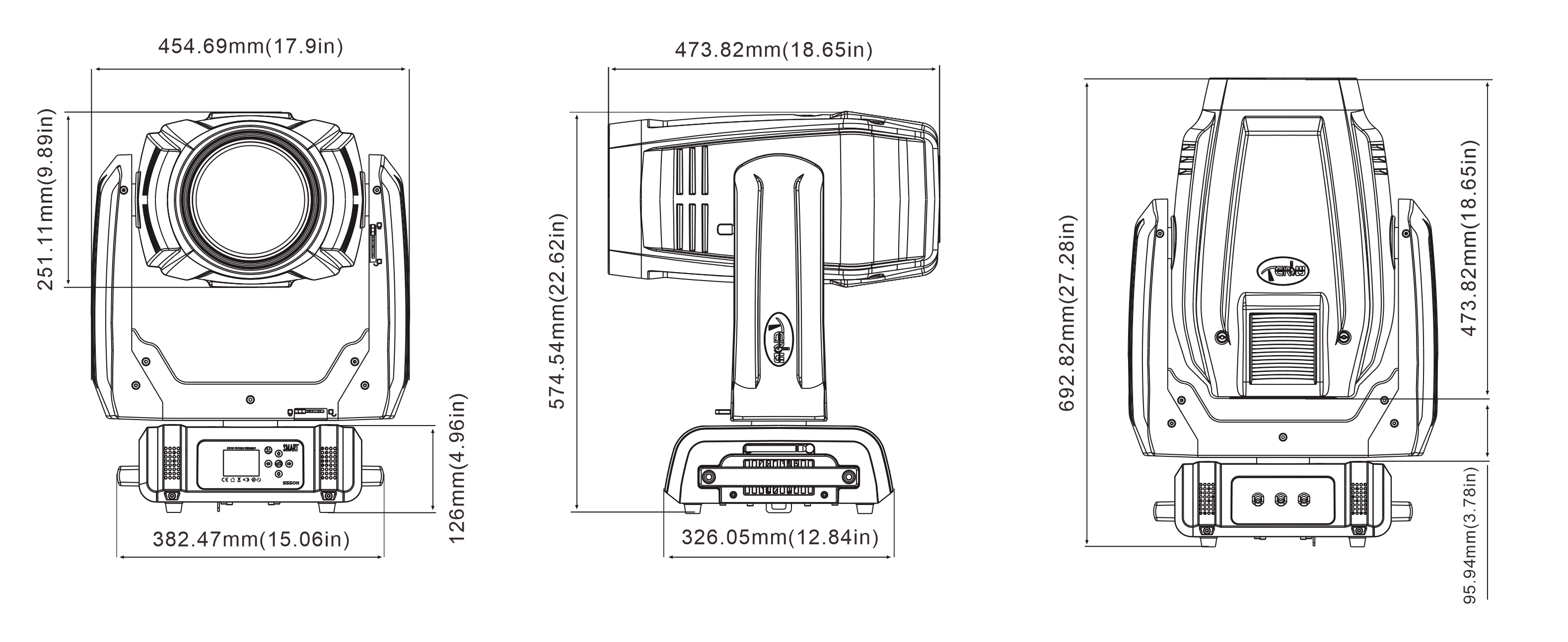 變焦范圍:光束模式: 2°-29°,  圖案模式: 3°-38.5°, 染色模式: 18.5 -35.5°