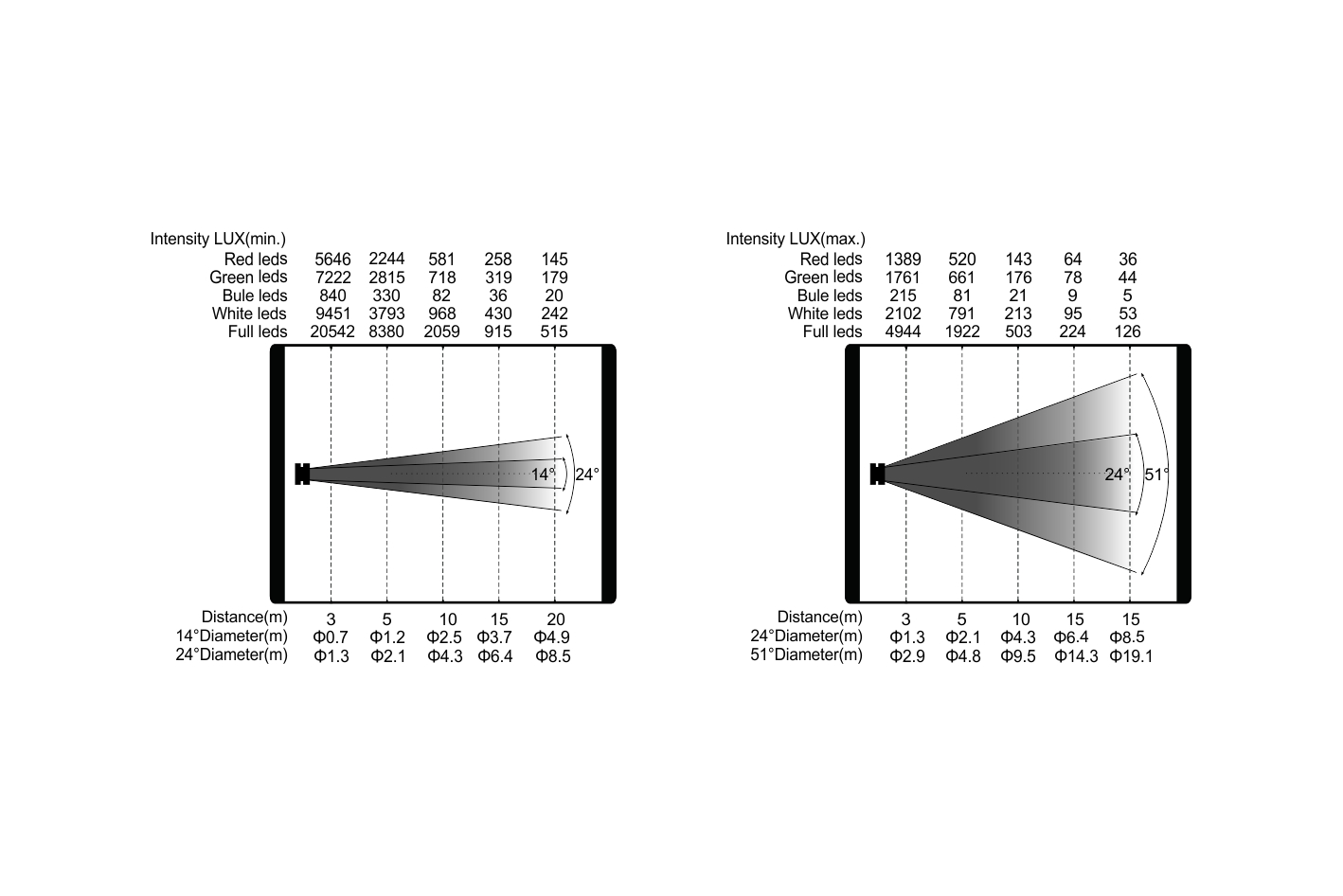 光源:37顆15W大功率RGBW 4合1 LED