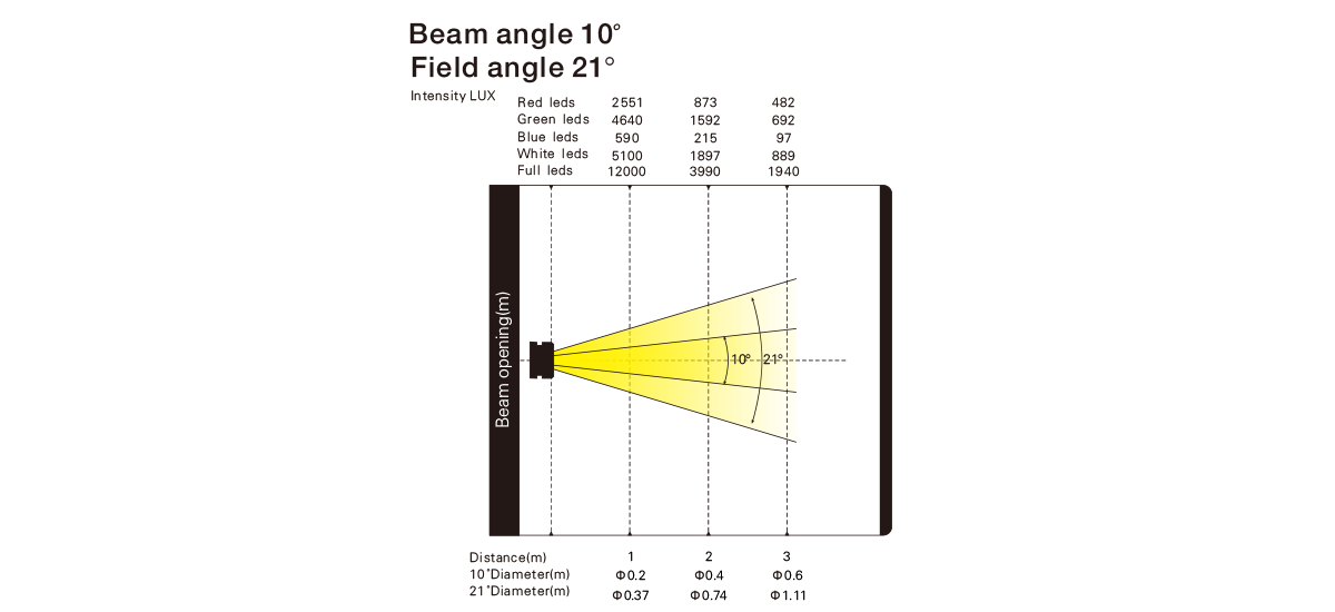 LED類(lèi)型:8顆10W大功率RGBW 4合1 LED,達(dá)到均勻細(xì)膩的混色效果
